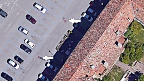In Piazza I Maggio, sulla strada in corrispondenza del bar Beethoven, sono presenti 4 tombini, di cui 2 rumorosi (quelli più piccoli). In allegato foto aerea con tombini rumorosi evidenziati.